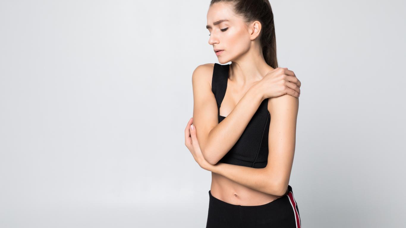 Wallpaper Modest sports girl on a gray background