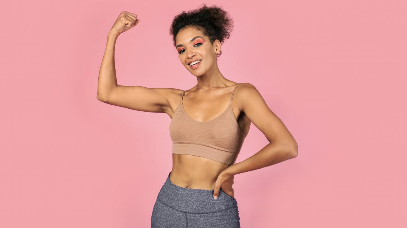 Wallpaper Sporty girl on a pink background