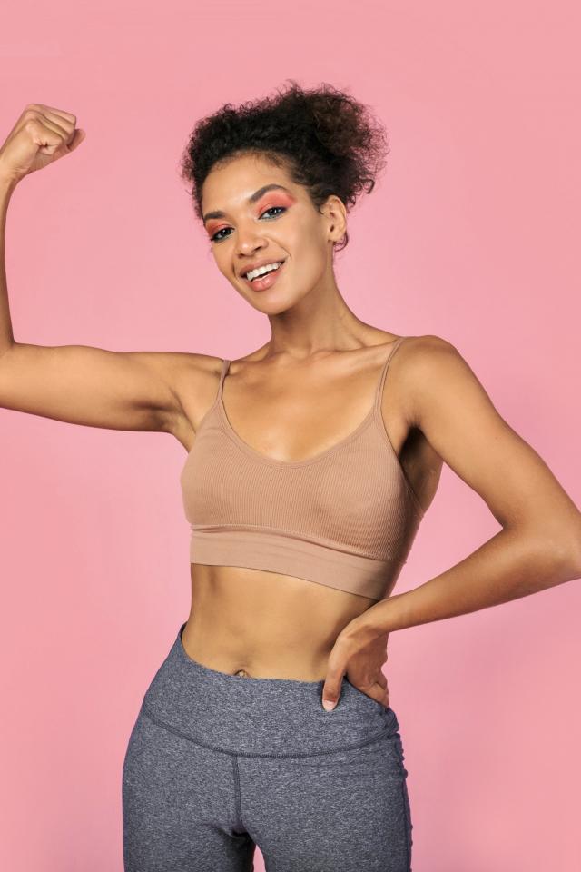 Wallpaper Sporty girl on a gray background