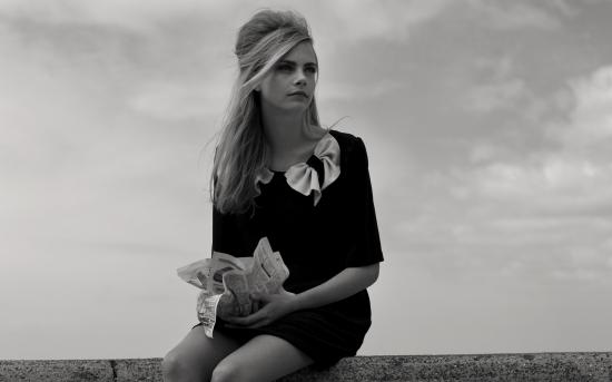 Wallpaper Black and white photo model Cara Delevingne