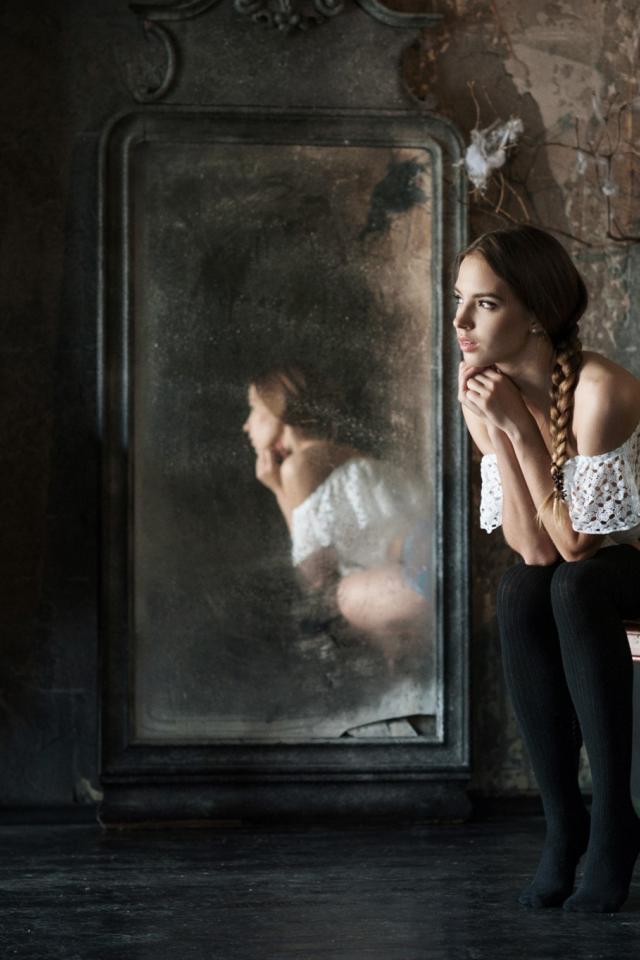 Wallpaper Victoria Lukin sat before the mirror