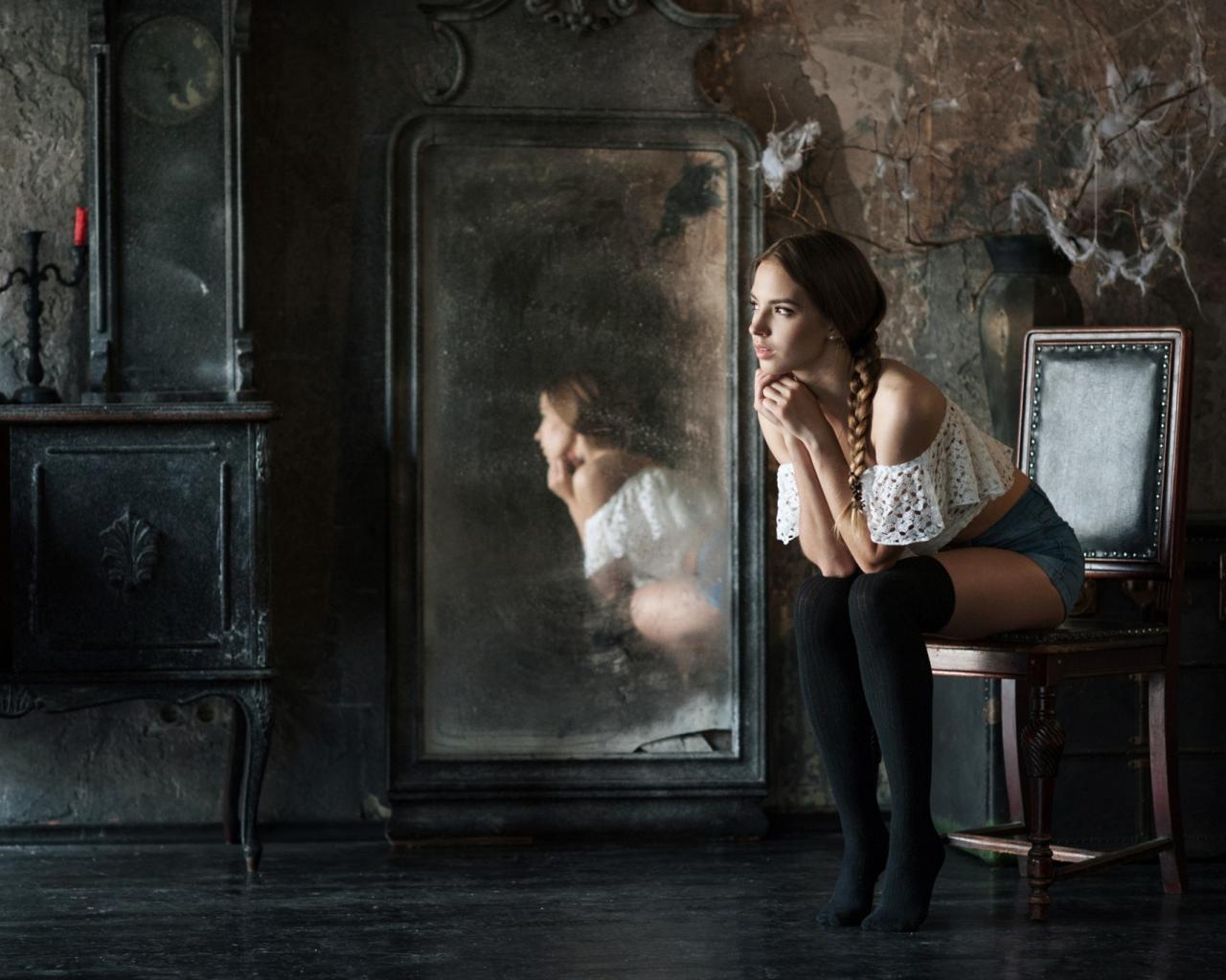 Wallpaper Victoria Lukin sat before the mirror