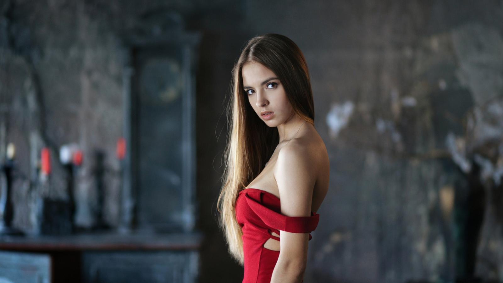 Wallpaper Model in a red dress Victoria Lukin