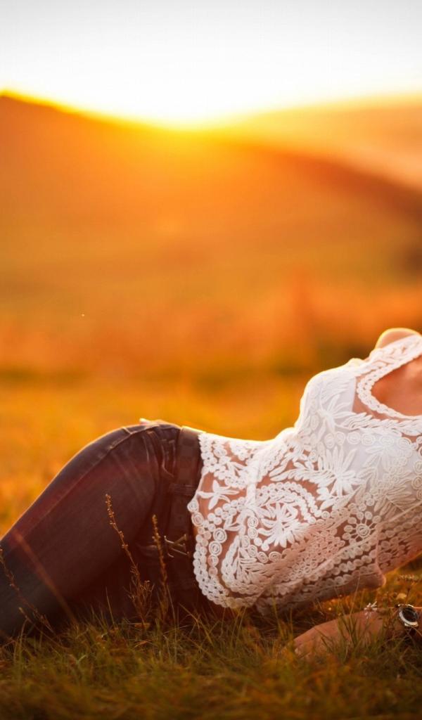» Wallpaper Model posing in jeans at sunset