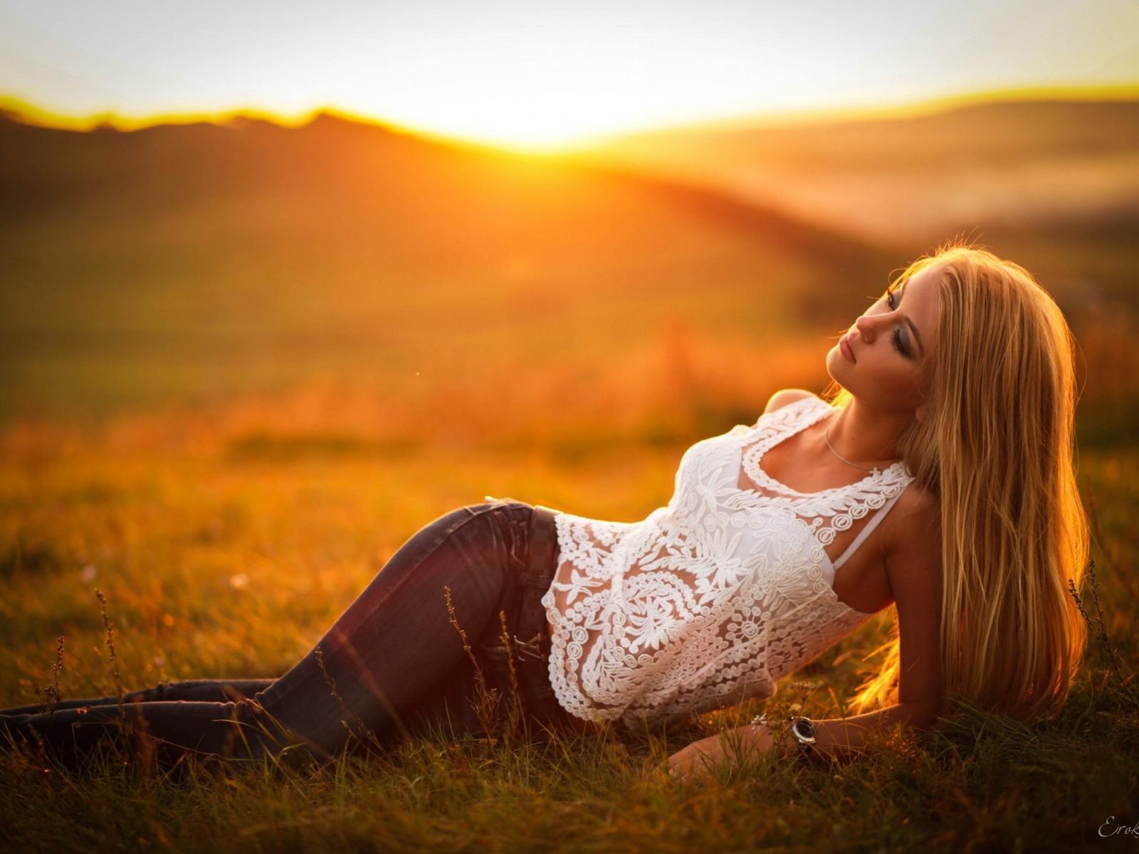 » Wallpaper Model posing in jeans at sunset