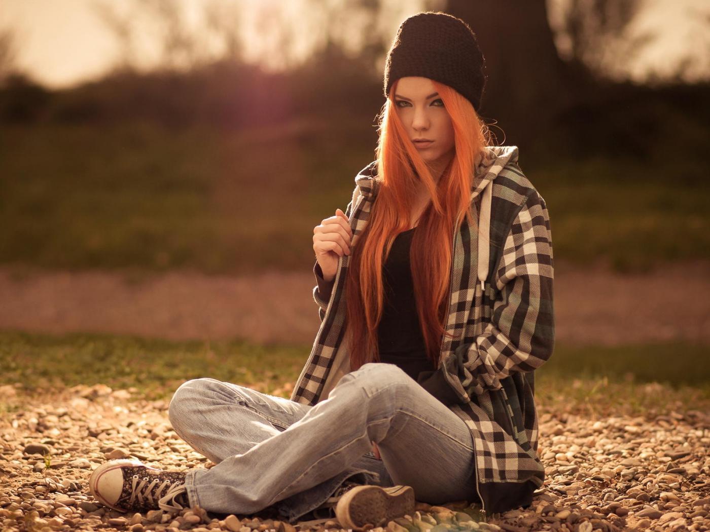 Wallpaper Red-haired girl in cap, photo Zara Axeronias