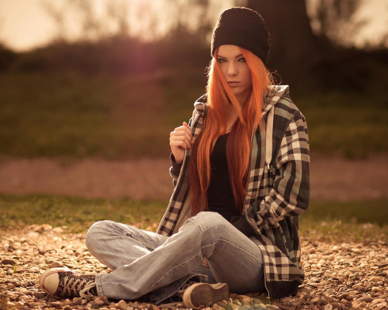 Wallpaper Red-haired girl in cap, photo Zara Axeronias