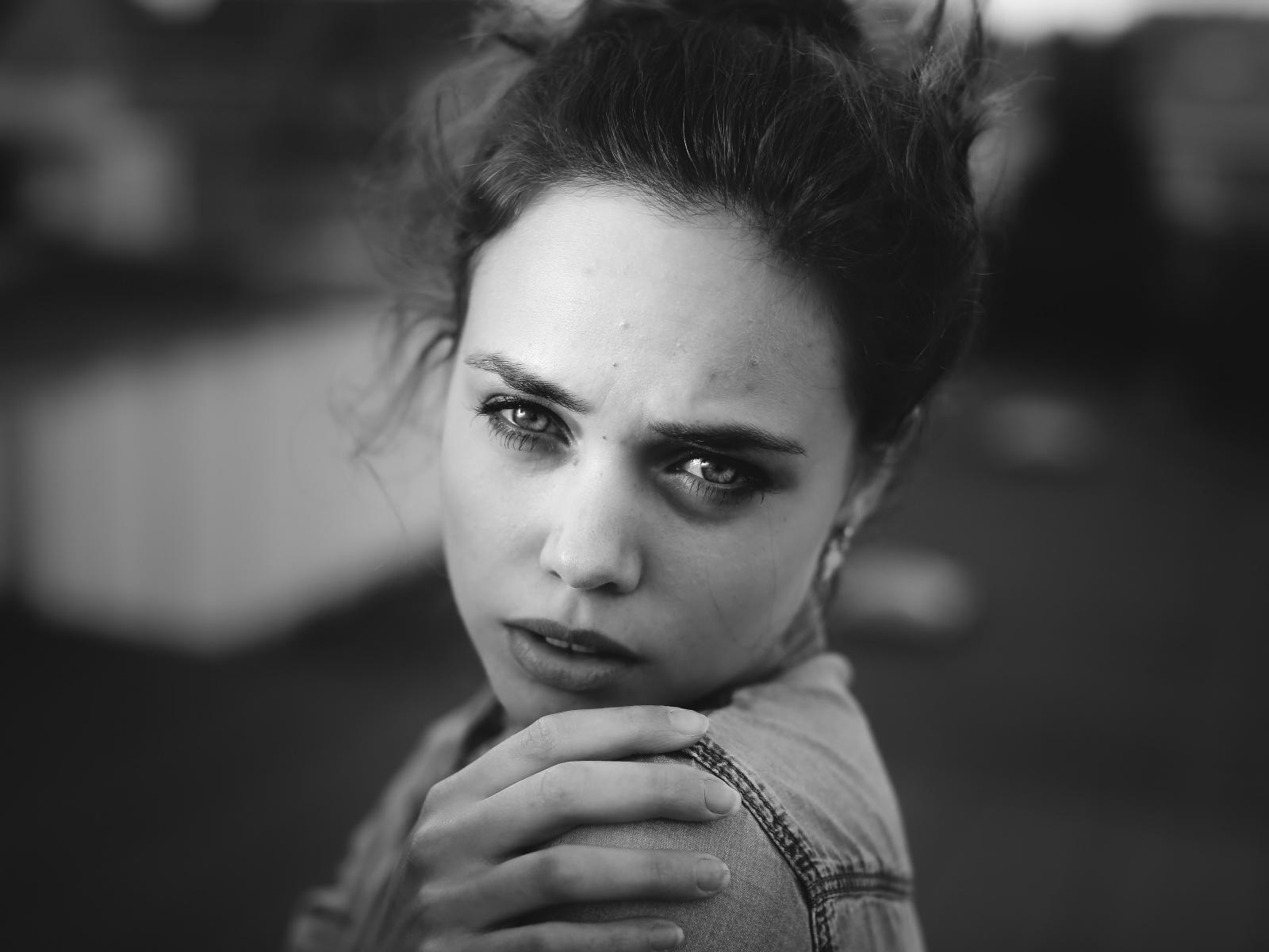 Wallpaper Black and white photo of the girl Aurela Skandaj