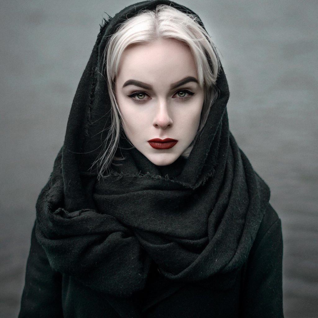 Wallpaper Girl model in black dress with red lips