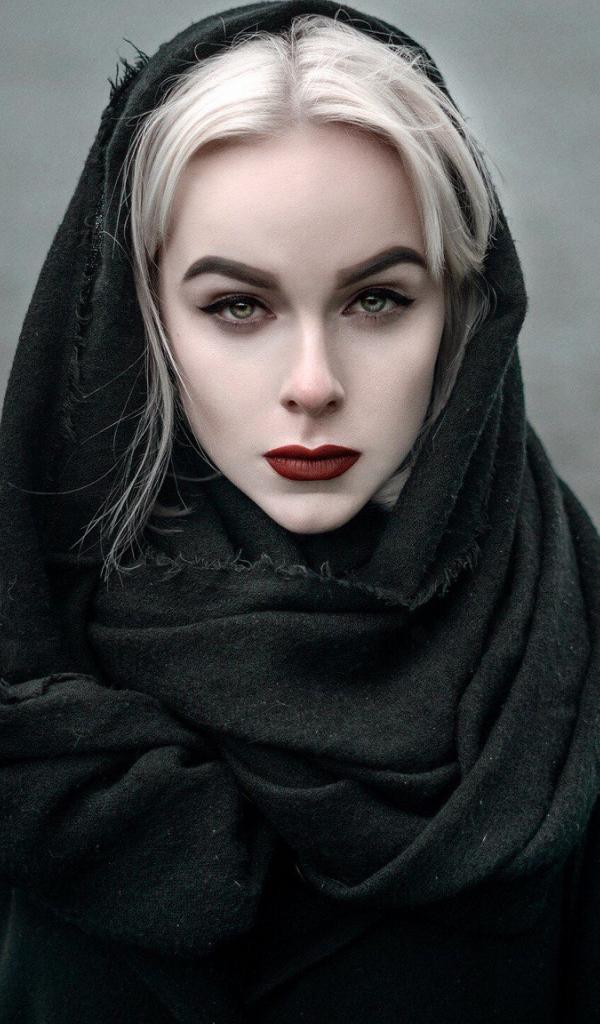 Wallpaper Girl model in black dress with red lips