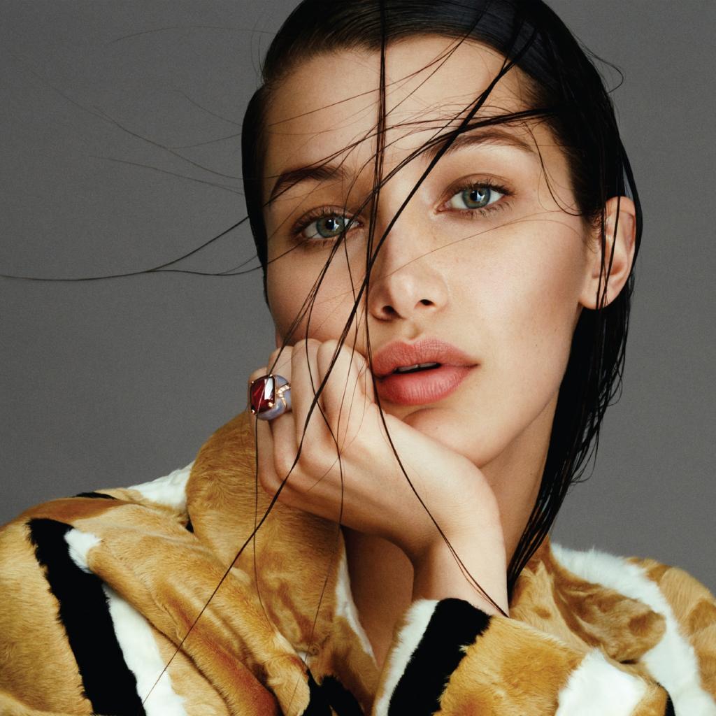 Wallpaper Girl model Bella Hadid photo on a gray background