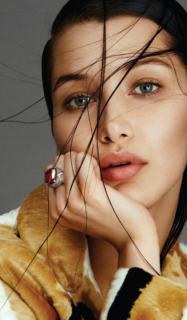 Wallpaper Girl model Bella Hadid photo on a gray background