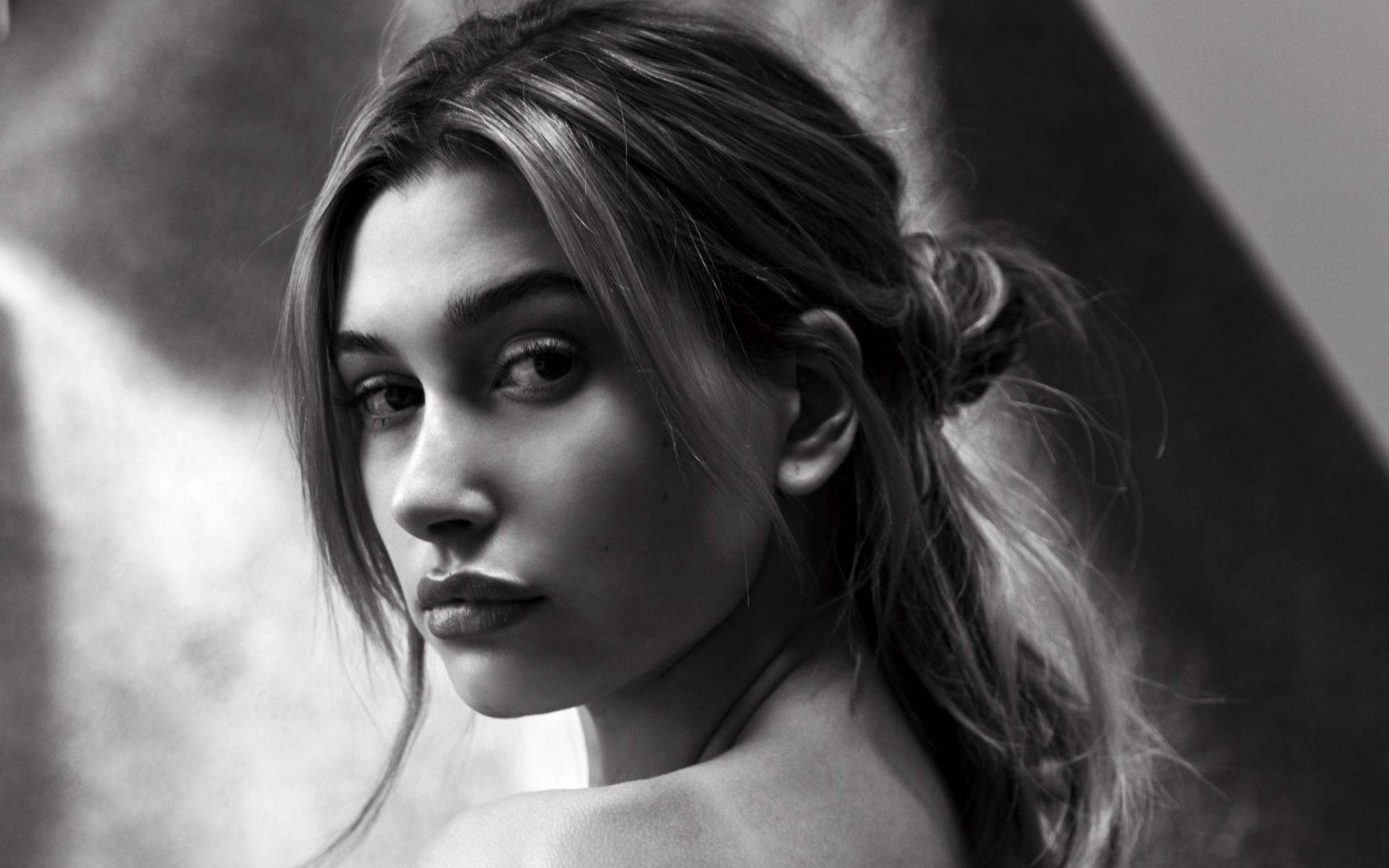 Wallpaper Model Haley Baldwin black and white photo