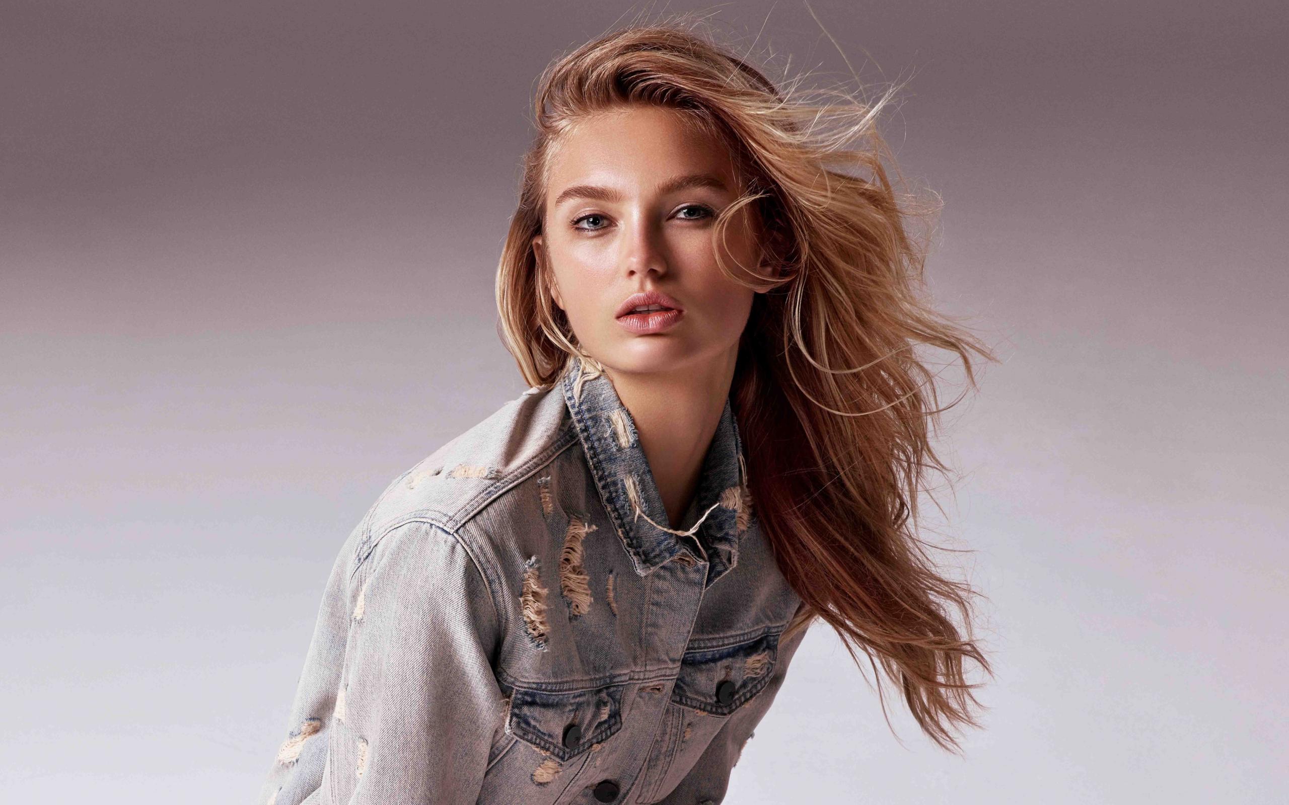 Wallpaper Young girl model Romy Strait in a denim jacket