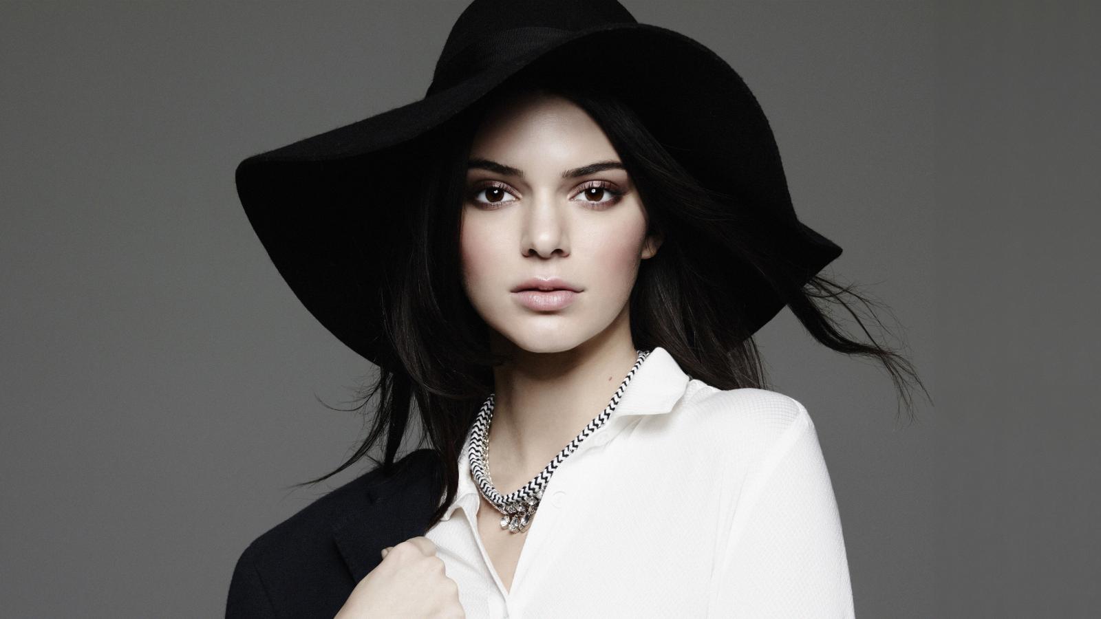 Wallpaper American supermodel Kendall Jenner in a big black hat