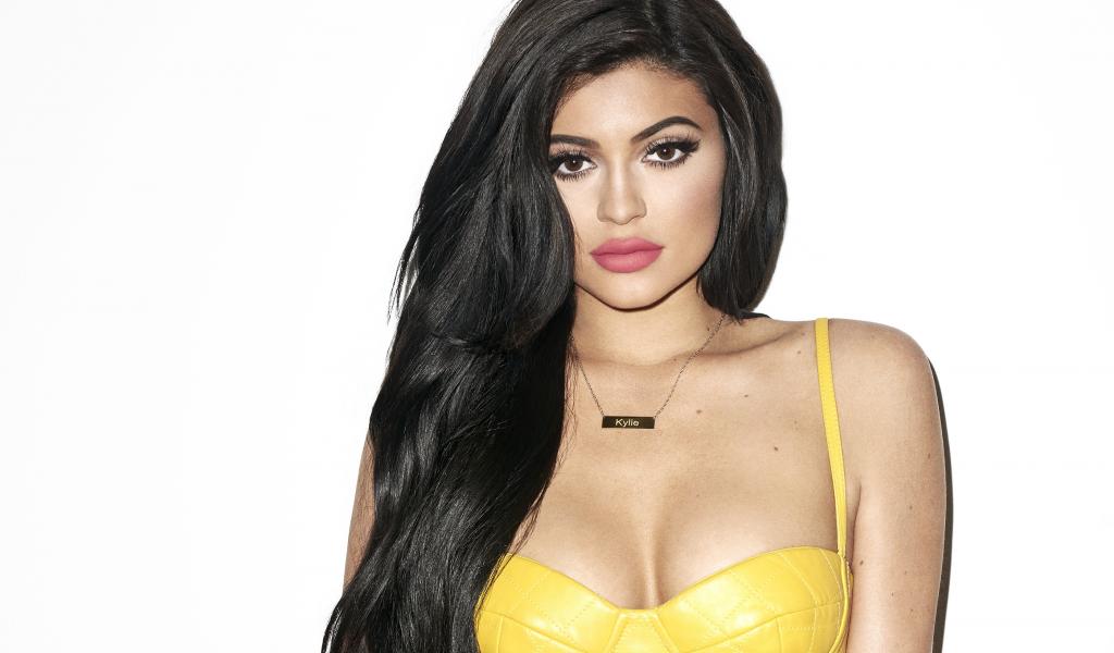 Wallpaper Long-haired girl model Kylie Jenner in a yellow shirt