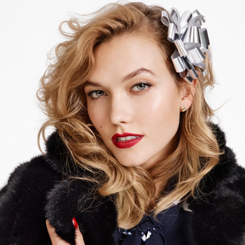 Wallpaper Model Karlie Kloss in a black fur coat on a white background