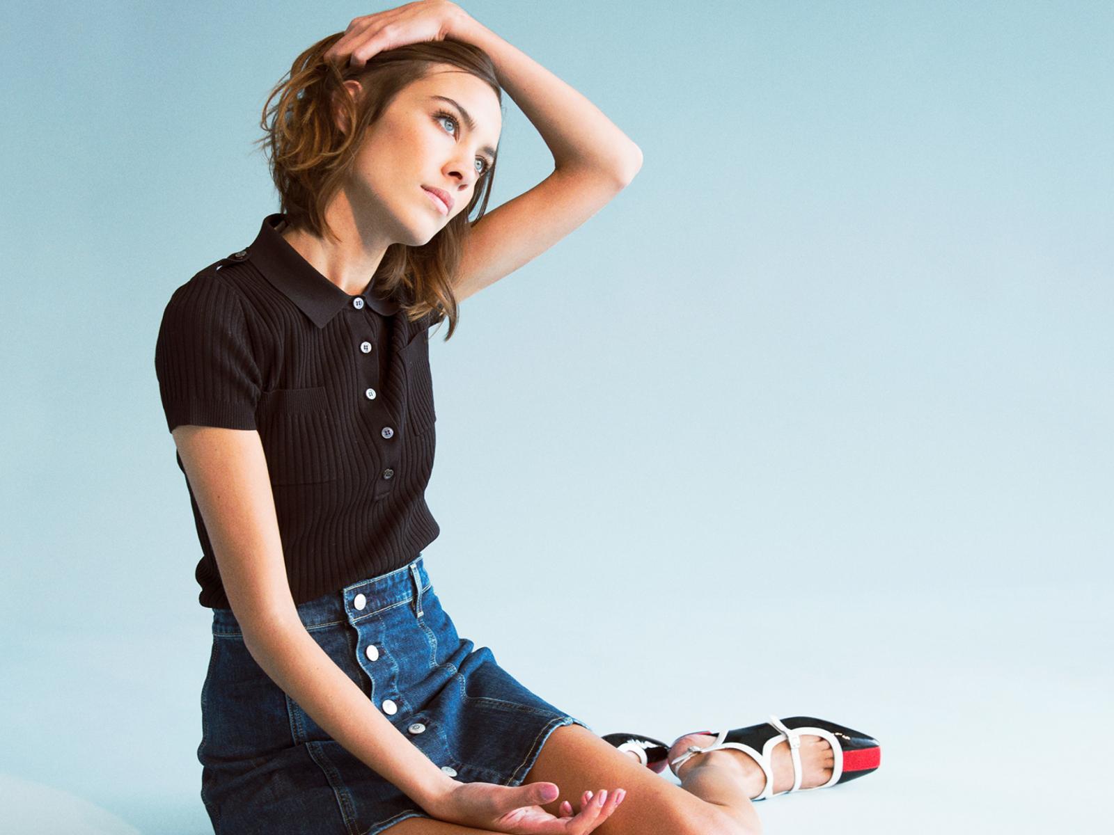 Wallpaper Model Alex Chang sits on a blue background