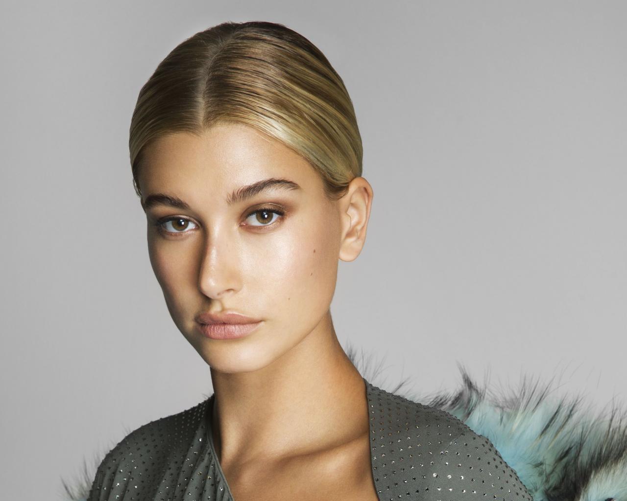 Wallpaper Serious blonde model Hayley Baldwin on a gray background