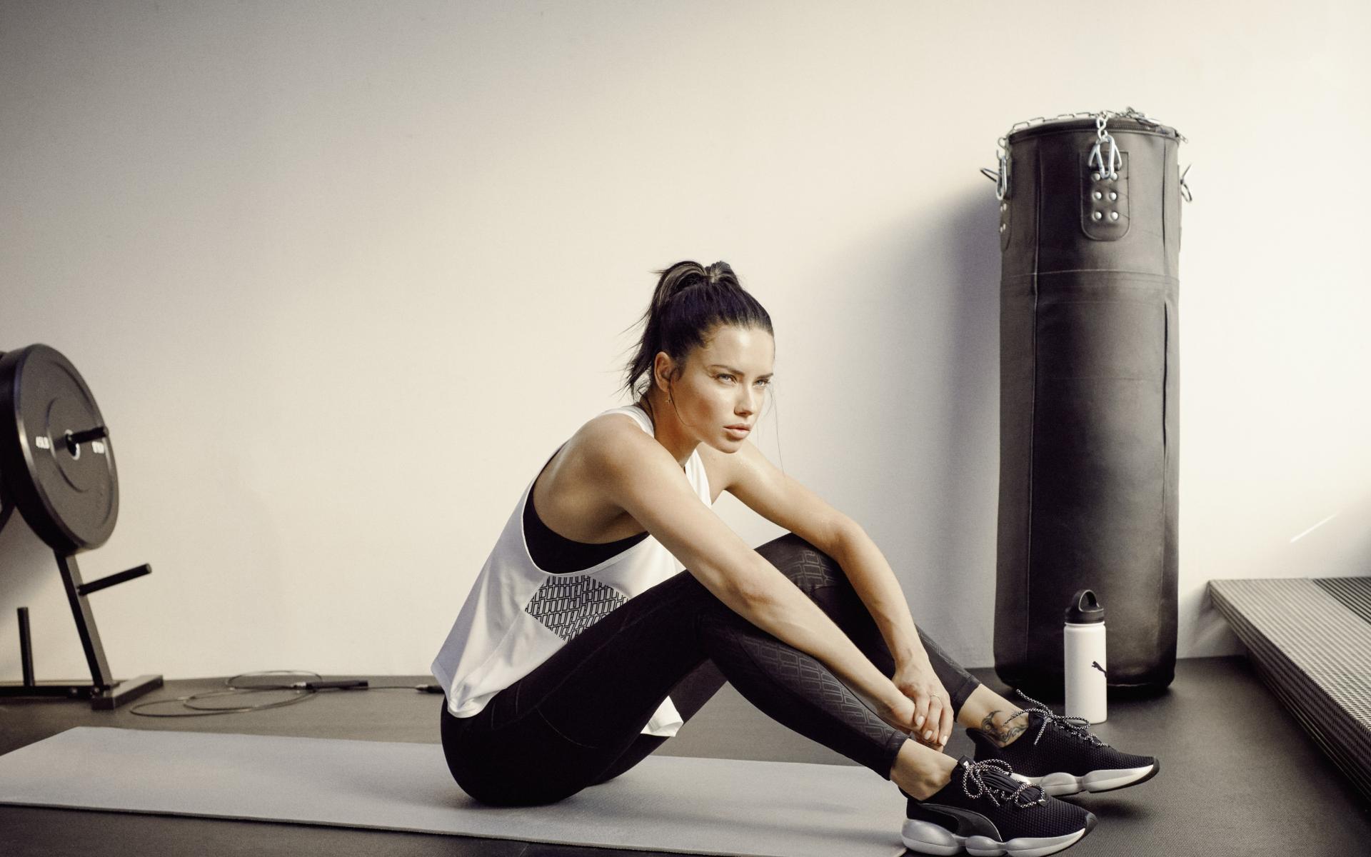 Wallpaper Sports girl model Adriana Lima in the gym