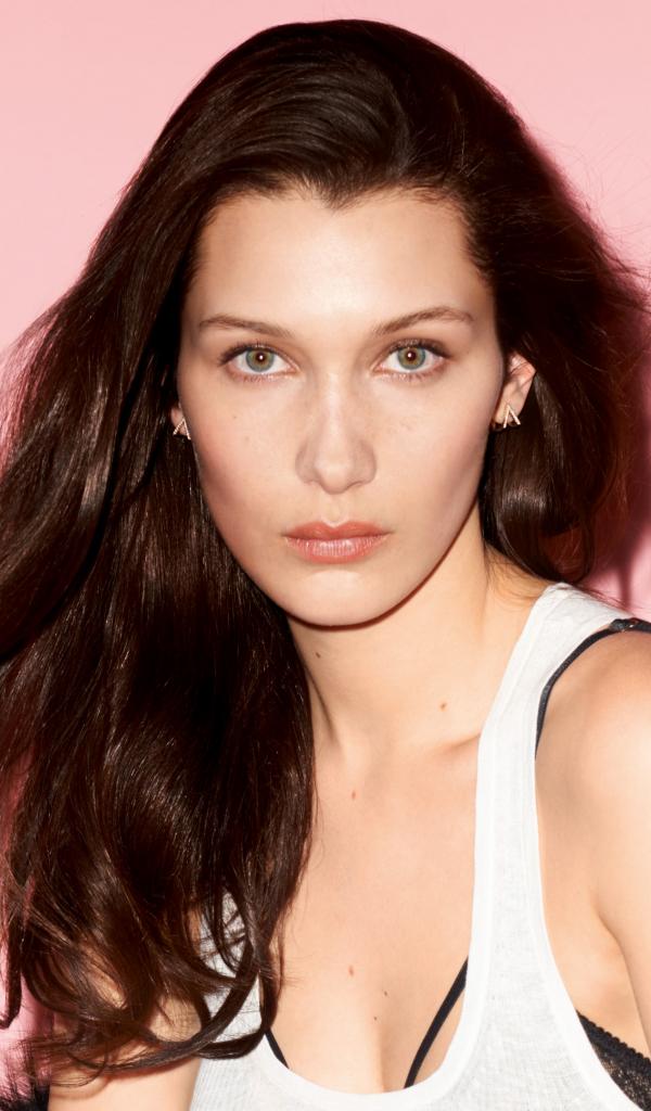 Wallpaper Beautiful tender girl model Bella Hadid on a pink background