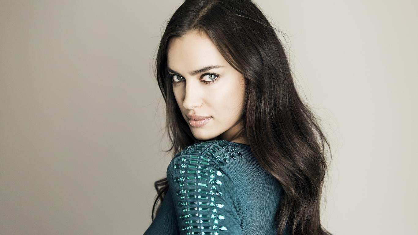 Wallpaper Beautiful girl model Irina Shayk on a gray background
