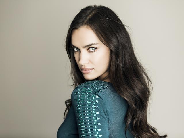 Wallpaper Beautiful girl model Irina Shayk on a gray background