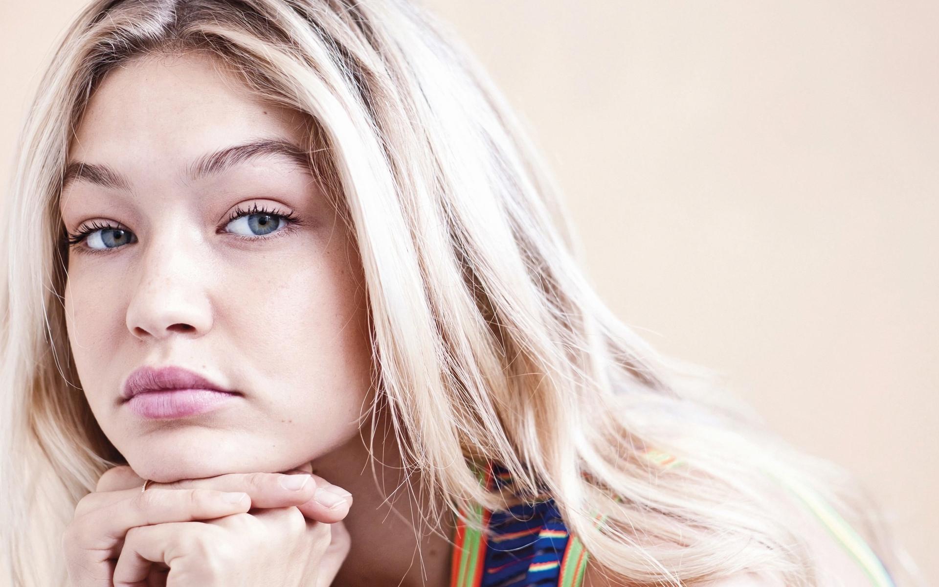 Wallpaper Beautiful blonde model Gigi Hadid face closeup