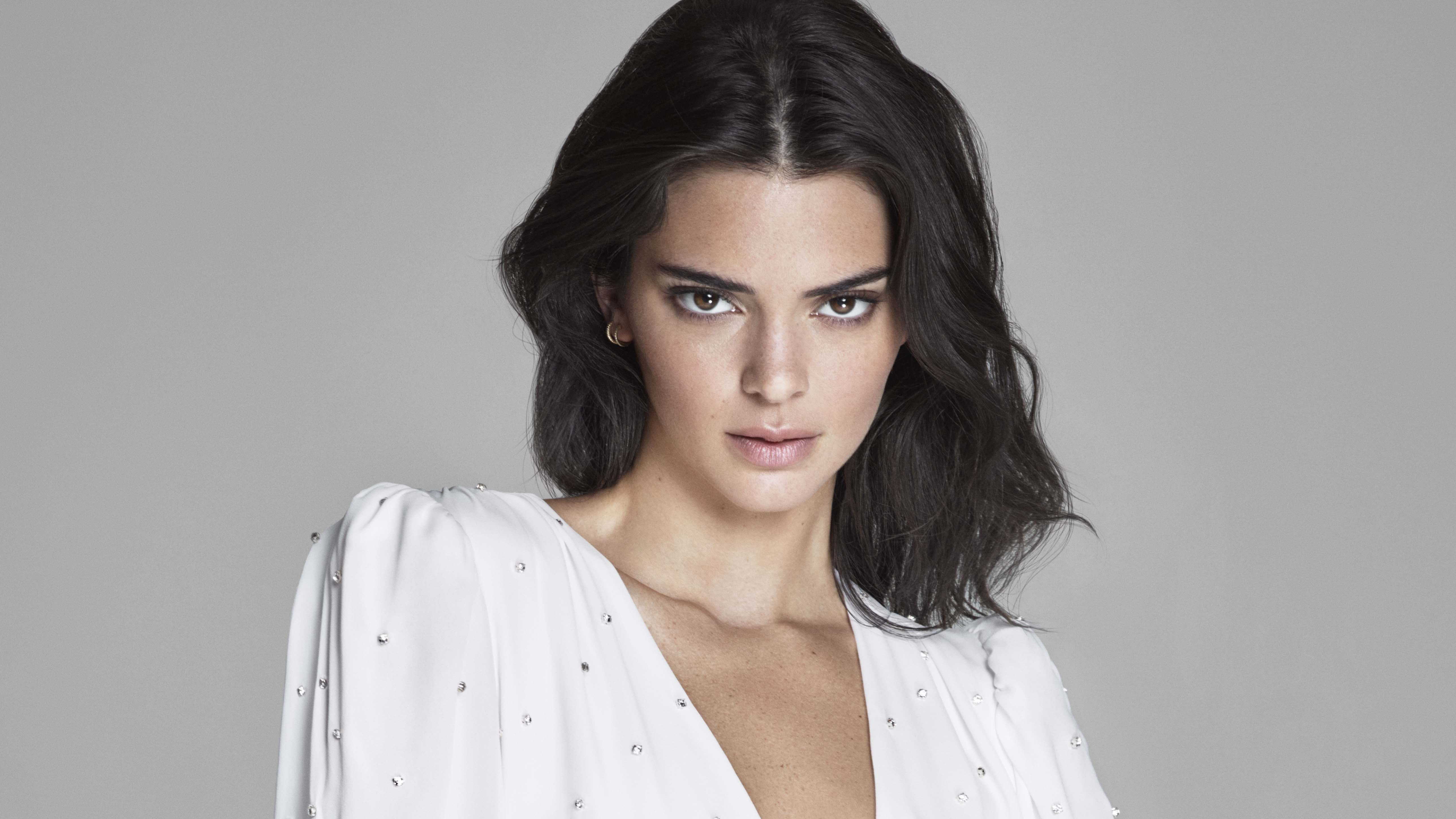 Wallpaper Glance brunette Kendall Jenner on a gray background