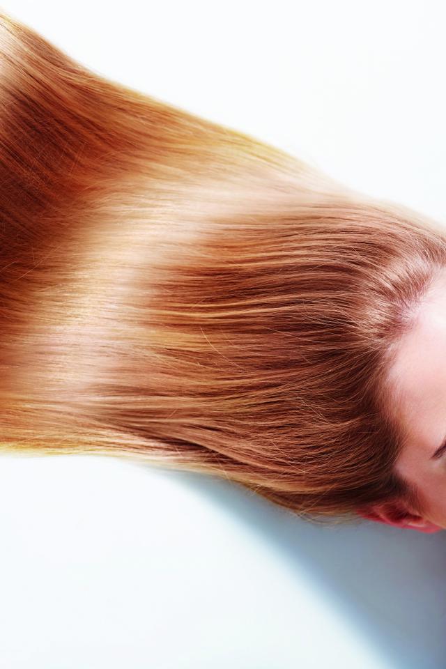 Wallpaper Girl model with beautiful hair lies on a white background