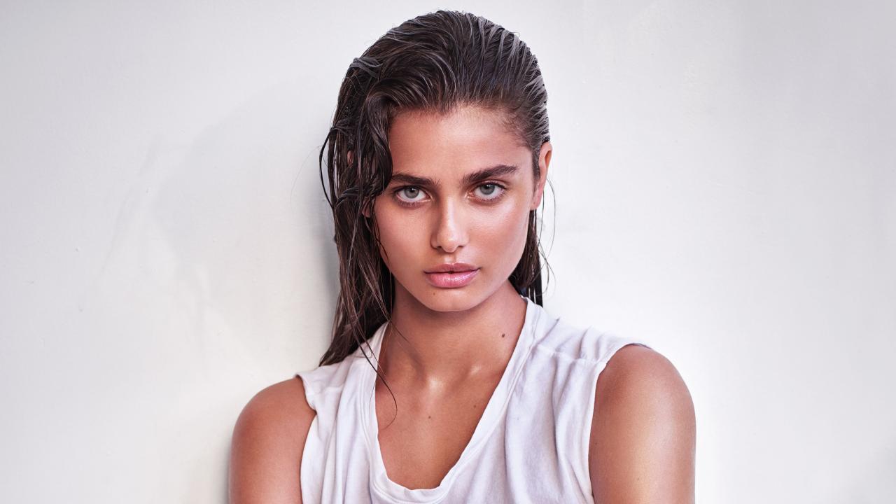 Wallpaper Girl with wet hair, model Taylor Hill on a white background