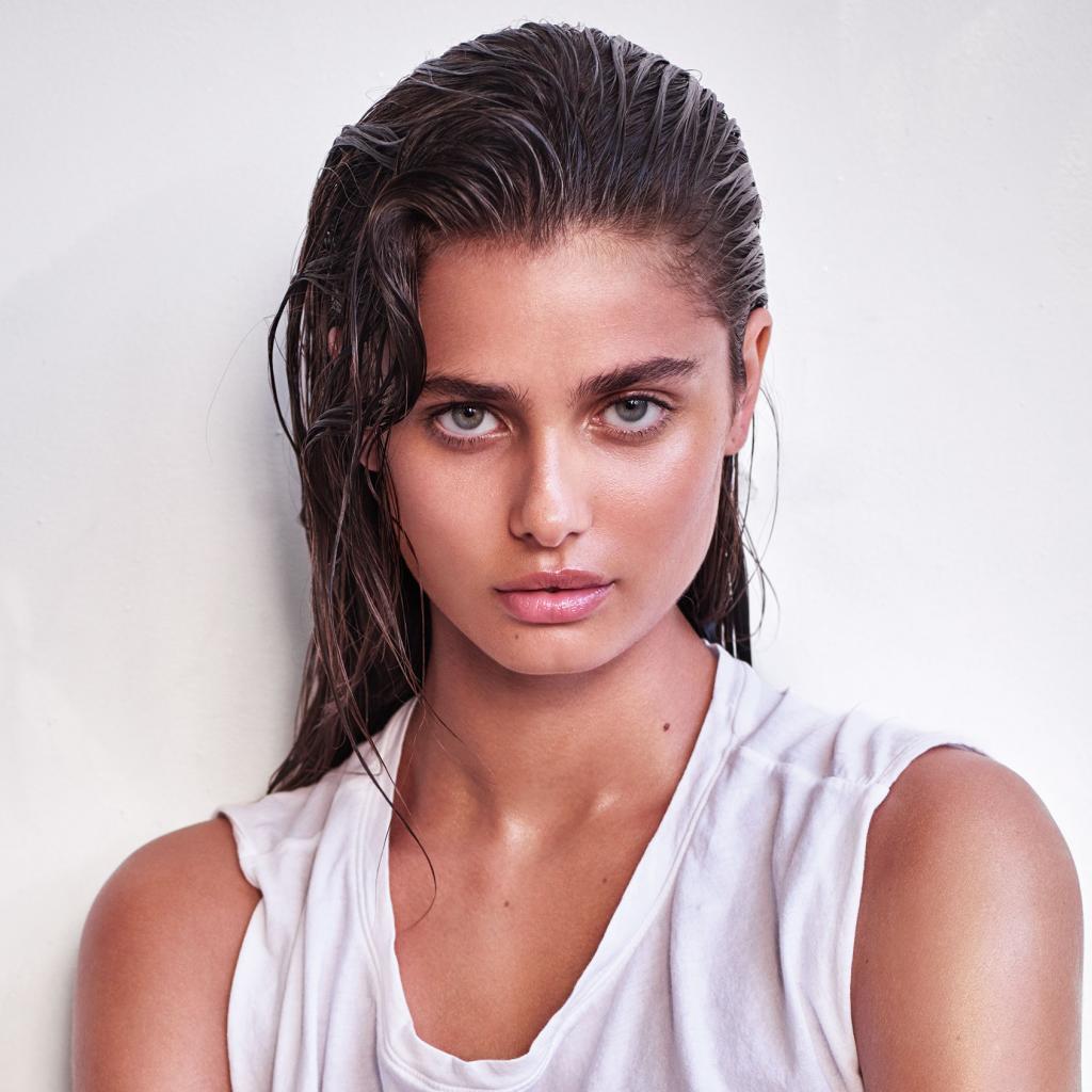 Wallpaper Girl with wet hair, model Taylor Hill on a white background