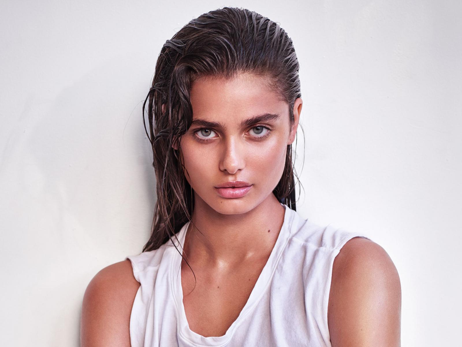 Wallpaper Girl with wet hair, model Taylor Hill on a white background