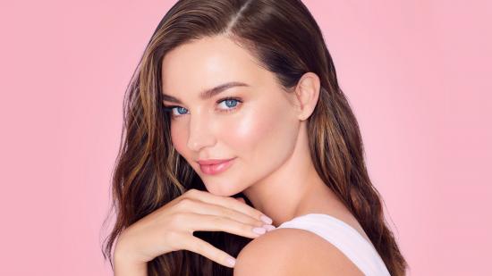 Wallpaper Australian model Miranda Kerr on a pink background