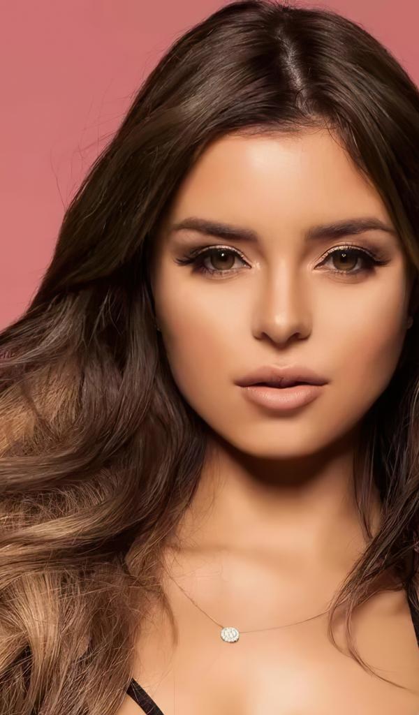 Wallpaper Beautiful long-haired model Demi Rose on a pink background