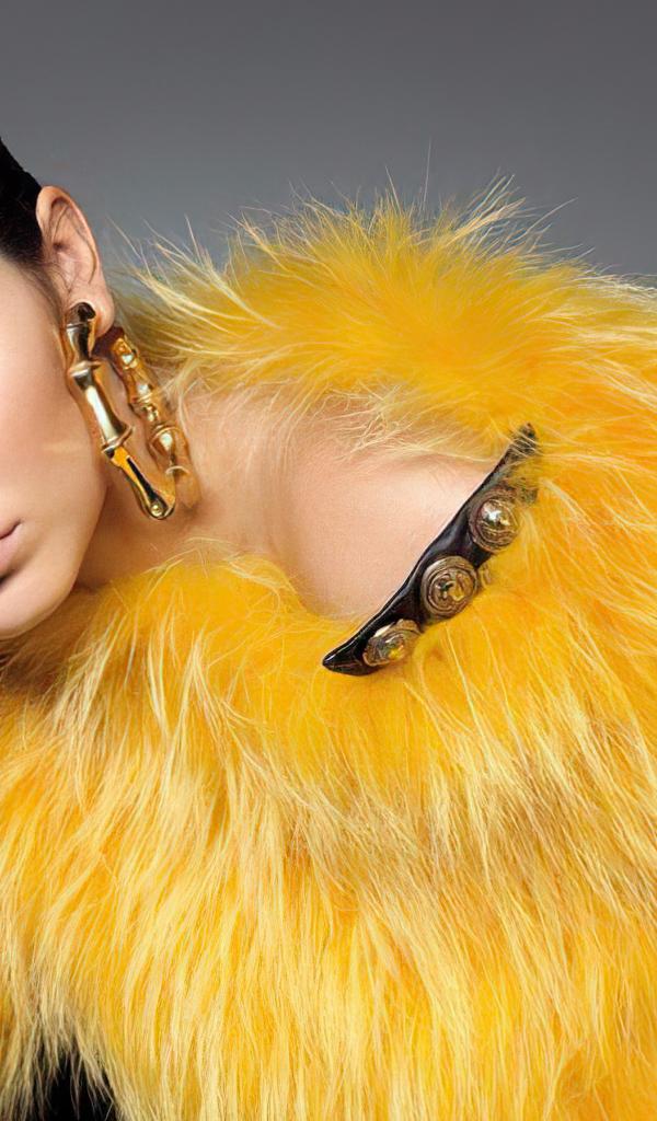 Wallpaper Beautiful model Kendall Jenner in a yellow fur coat