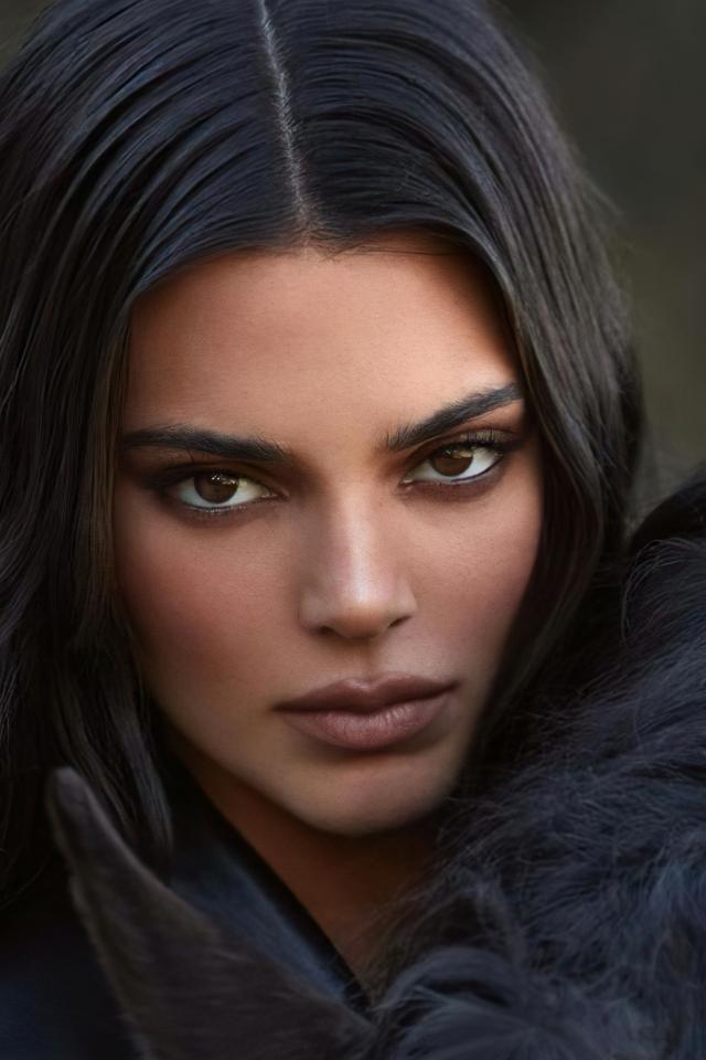 Wallpaper Long-haired girl model Kendall Jenner with a horse