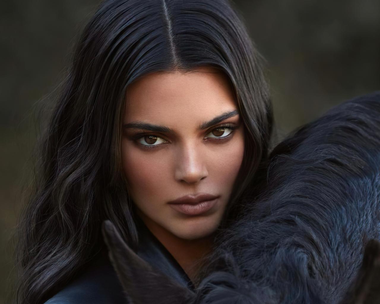 Wallpaper Long-haired girl model Kendall Jenner with a horse