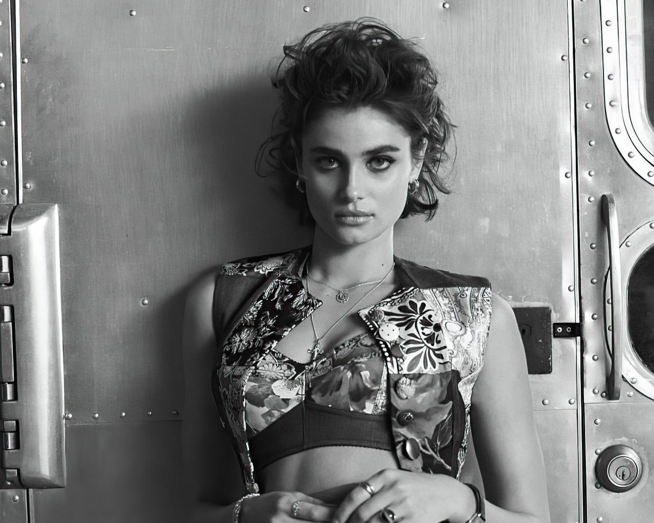 Wallpaper American model Taylor Hill black and white photo