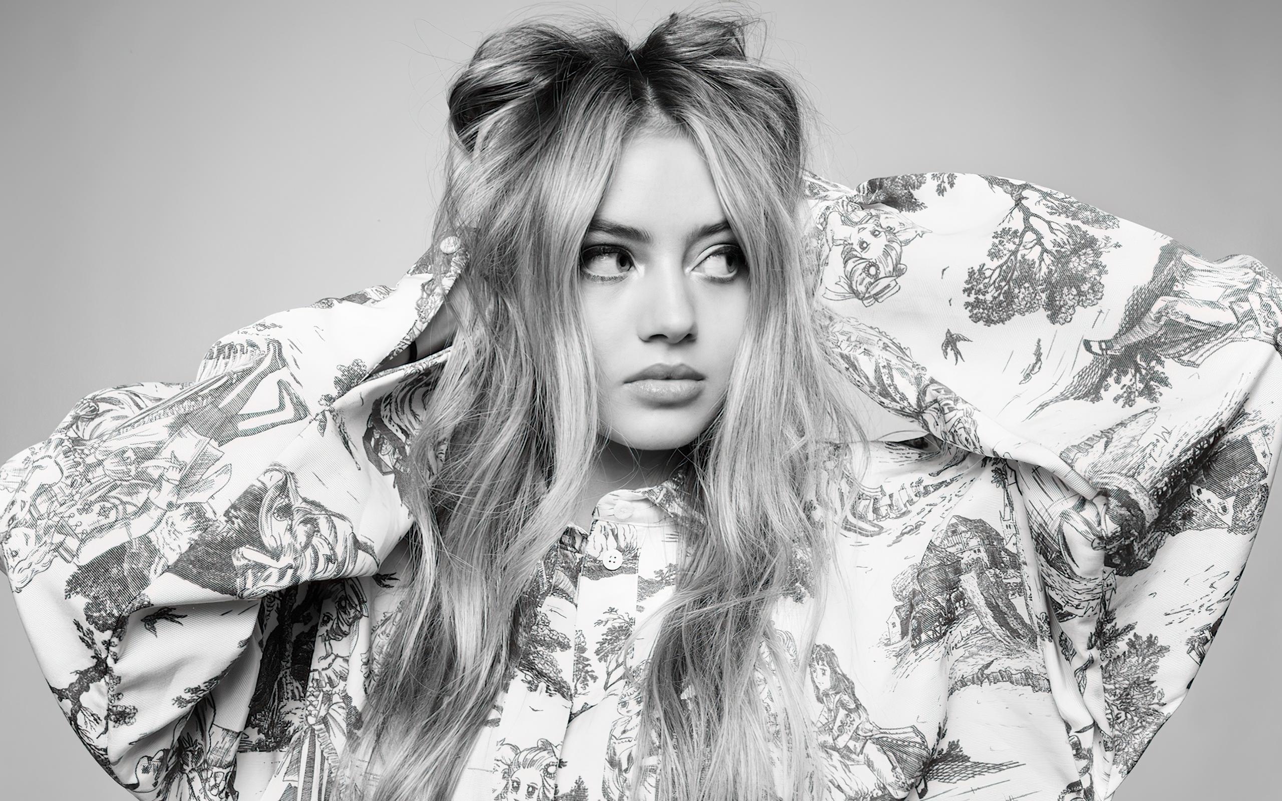Wallpaper Young girl model Leni Klum on a gray background