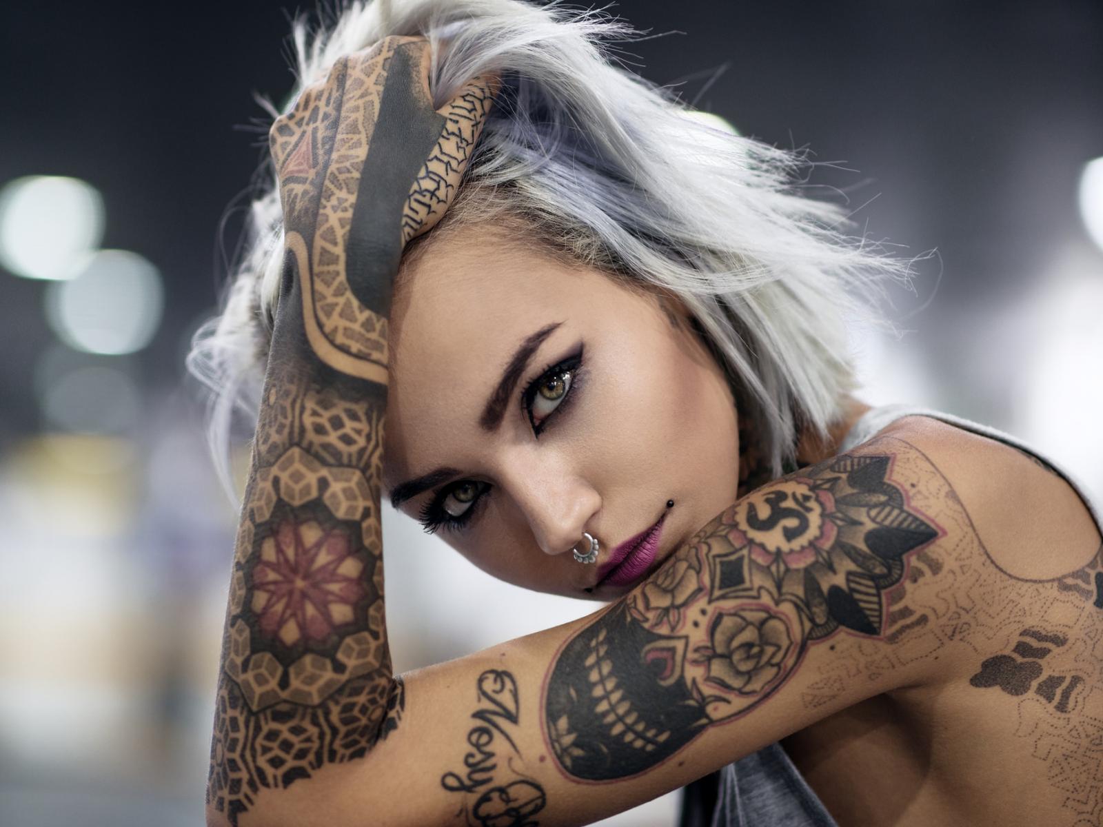 Wallpaper Beautiful girl with tattoos on the body of Kat Von D