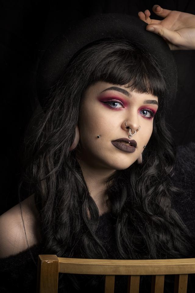 Wallpaper Girl neformalka with black hat with piercing on face