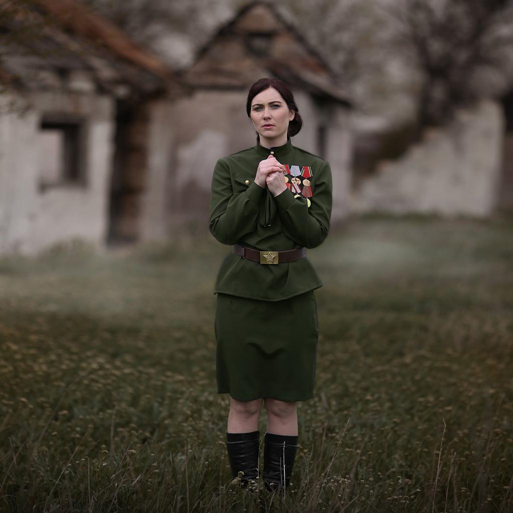 Wallpaper A girl in a tunic with military awards for May 9, retro