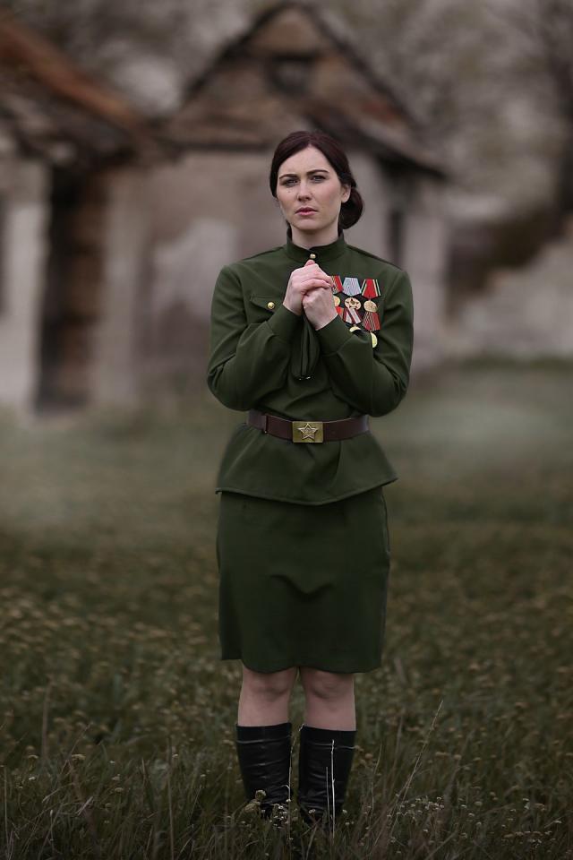 Wallpaper A girl in a tunic with military awards for May 9, retro