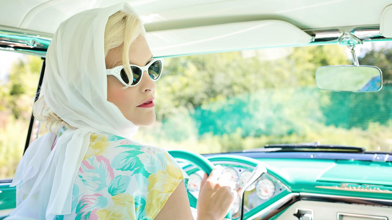 Wallpaper Retro girl with glasses in an old car
