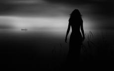 Wallpaper Black and white photo of the girl Aurela Skandaj