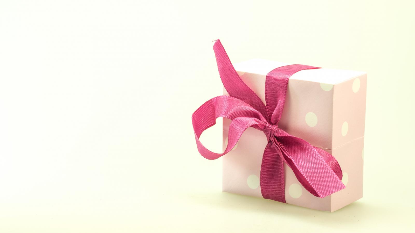 Wallpaper Gift box with pink bow on white background