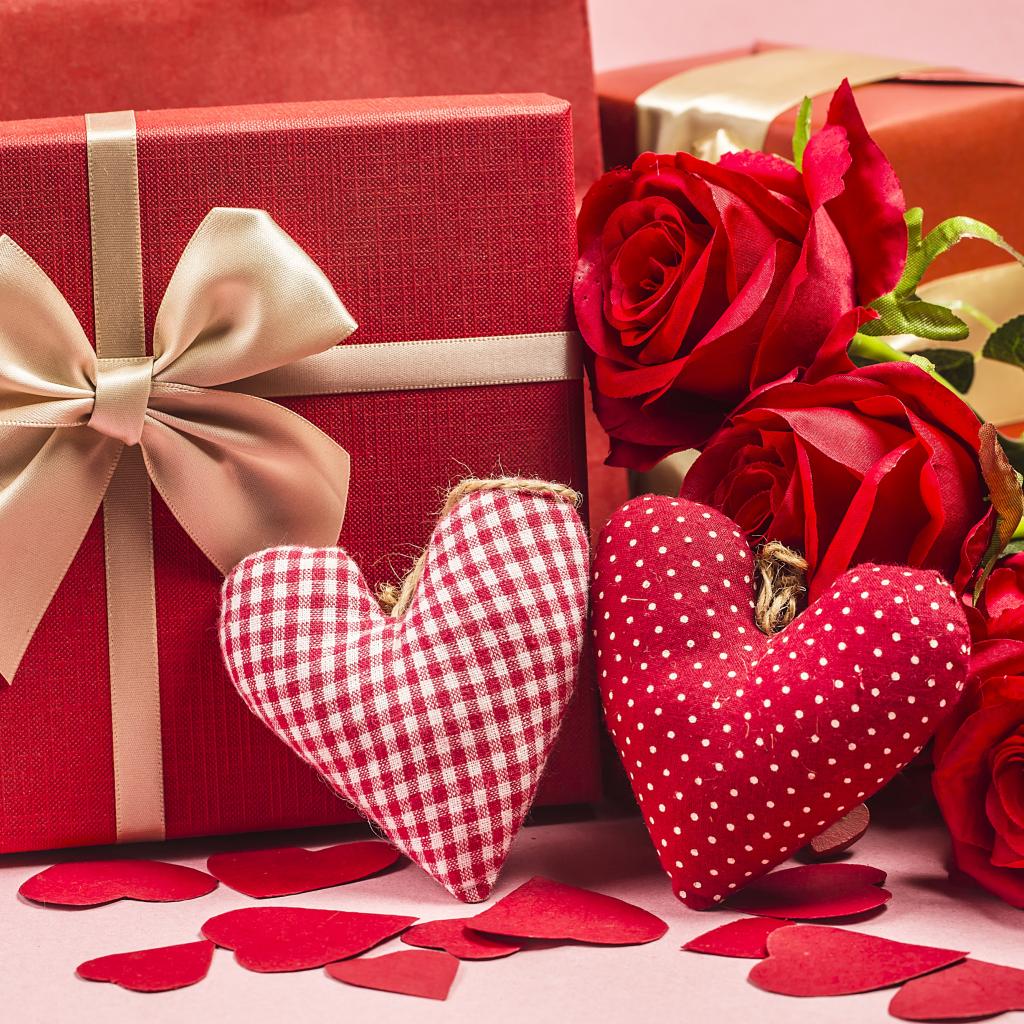 Wallpaper Two gifts with red roses and fabric hearts