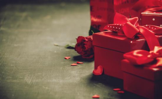 Wallpaper Red boxes with gifts on a table with a rose