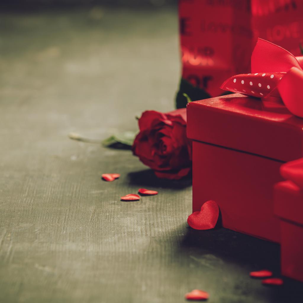Wallpaper Red boxes with gifts on a table with a rose